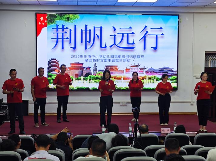 尤为值得一提的是,本次研修创新性地以九个临时党支部为单位,组织开展了一场别开生面的主题党日活动。各支部在前期利用课余时间,围绕主题进行了精心筹备和认真排练。在8月17日上午的集中展示环节,各支部节目精彩纷呈,通过朗诵、红歌合唱、情景党课、心得分享等多种形式,深情抒发了对党的忠诚与对教育的热爱,集中展示了阶段性的学习成果,生动诠释了新时代党组织书记的精神风貌与责任担当。这场完全由学员自编自导自演的主题党日,不仅是一堂深刻的党性教育实践课,更是一次高效的团队熔炼,极大地增强了基层党组织的组织力和凝聚力。