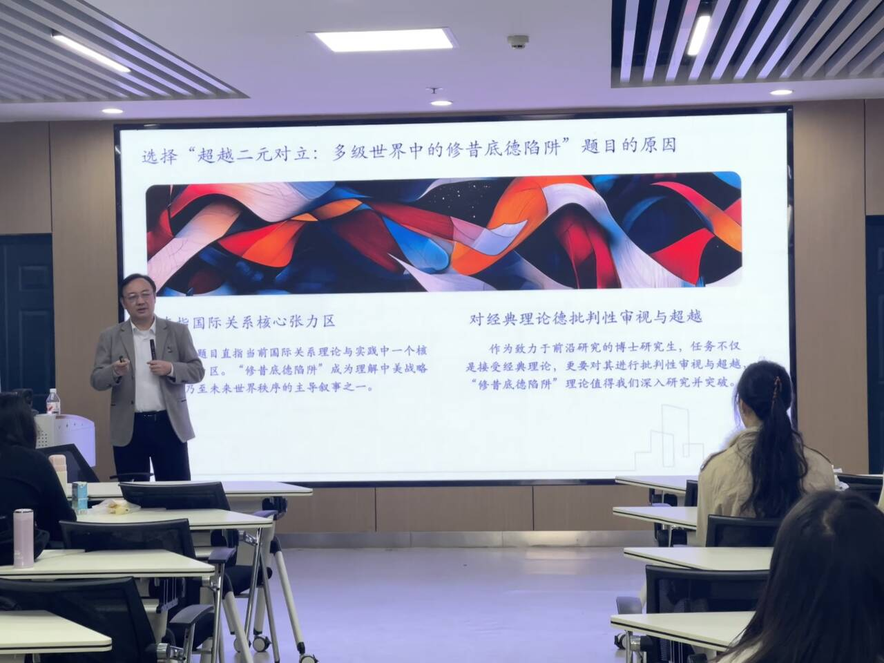 在讲座后半部分,何章银教授着重阐释了核心观点:一是将国际体系视为“动态演化的复杂适应系统”,替代单一对抗逻辑;二是通过“进程性制度主义”构建多层次合作架构,实现系统的协同演进与竞争性共存;三是中国在多极化格局中,需立足自身定位探索兼具包容性与韧性的互动路径。这些观点为在场研究生理解当代国际体系提供了全新的分析框架。