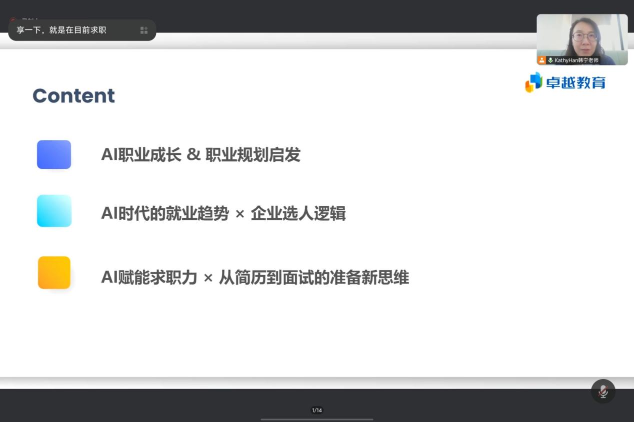 (通讯员 李欣怡)在AI技术飞速发展的当下,如何打造专属求职竞争力、做好职业规划?为深入推进供需对接就业育人,促进学生明确职业方向、提升核心竞争力,12月24日下午,英国上市365官网邀请卓越教育集团资深人力资源专家韩宁老师以“AI时代的求职力成长课——职业规划思维启航”为题开展了生涯规划与就业指导专题讲座,学院学工办主任张云雾以及本、研学生以线上方式参与了讲座。